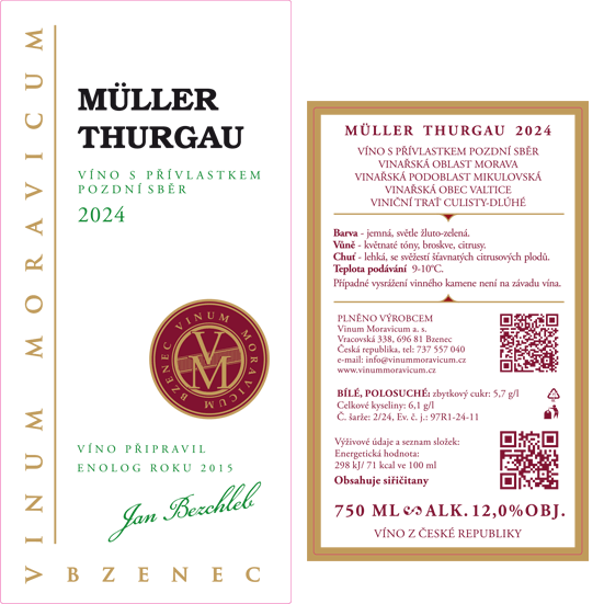 Barva - jemná, světle žluto-zelená. Vůně - květnaté tóny, broskve, citrusy. Chuť - lehká, se svěžestí šťavnatých citrusových plodů. Teplota podávání 9–10 °C. Případné vysrážení vinného kamene není na závadu vína.